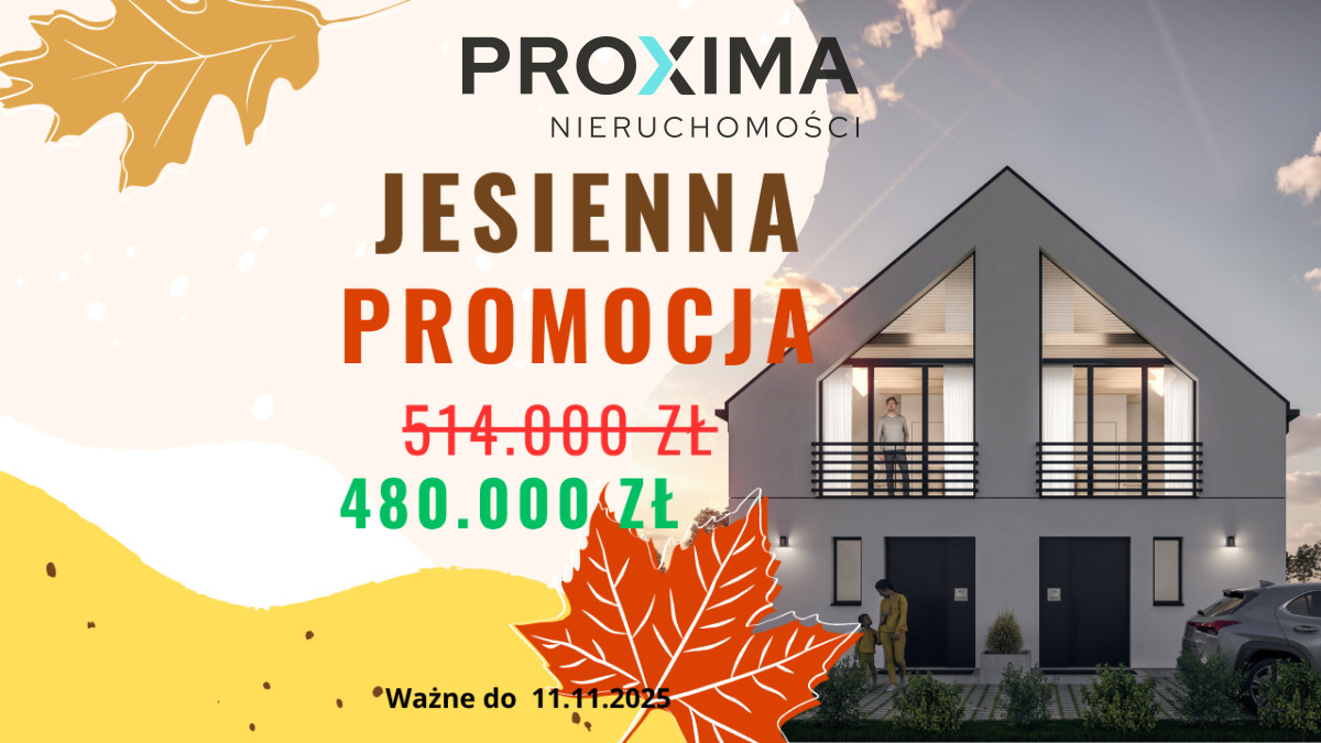Cena: 514 000 zł brutto (w cenie ogród ok. 110 m², 2 miejsca postojowe, taras, pompa ciepła),